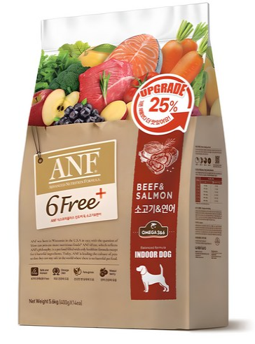 가성비형을 찾는다면 ANF 식스프리 플러스가 좋아요. 5.6kg 대용량으로 100g당 가격이 저렴하면서도 품질은 우수하답니다.